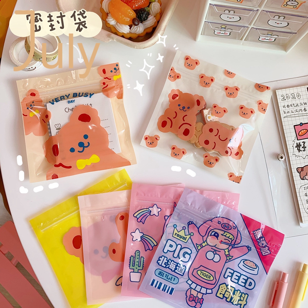 Túi đựng bánh kẹo thức ăn nhanh trong suốt sức chứa lớn in hình gấu hoạt hình dễ thương free ship